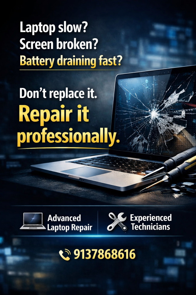 We provide complete laptop repair services including screen replacement, battery issues, software problems, and hardware repair. Quick service. Affordable rates. Trusted experts.